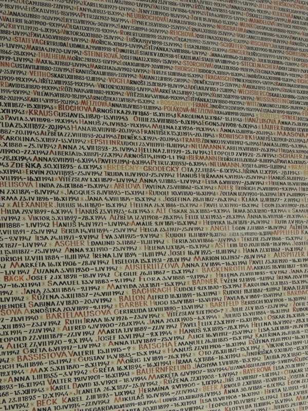 One of many walls listing the names of the 77,000 Czechs